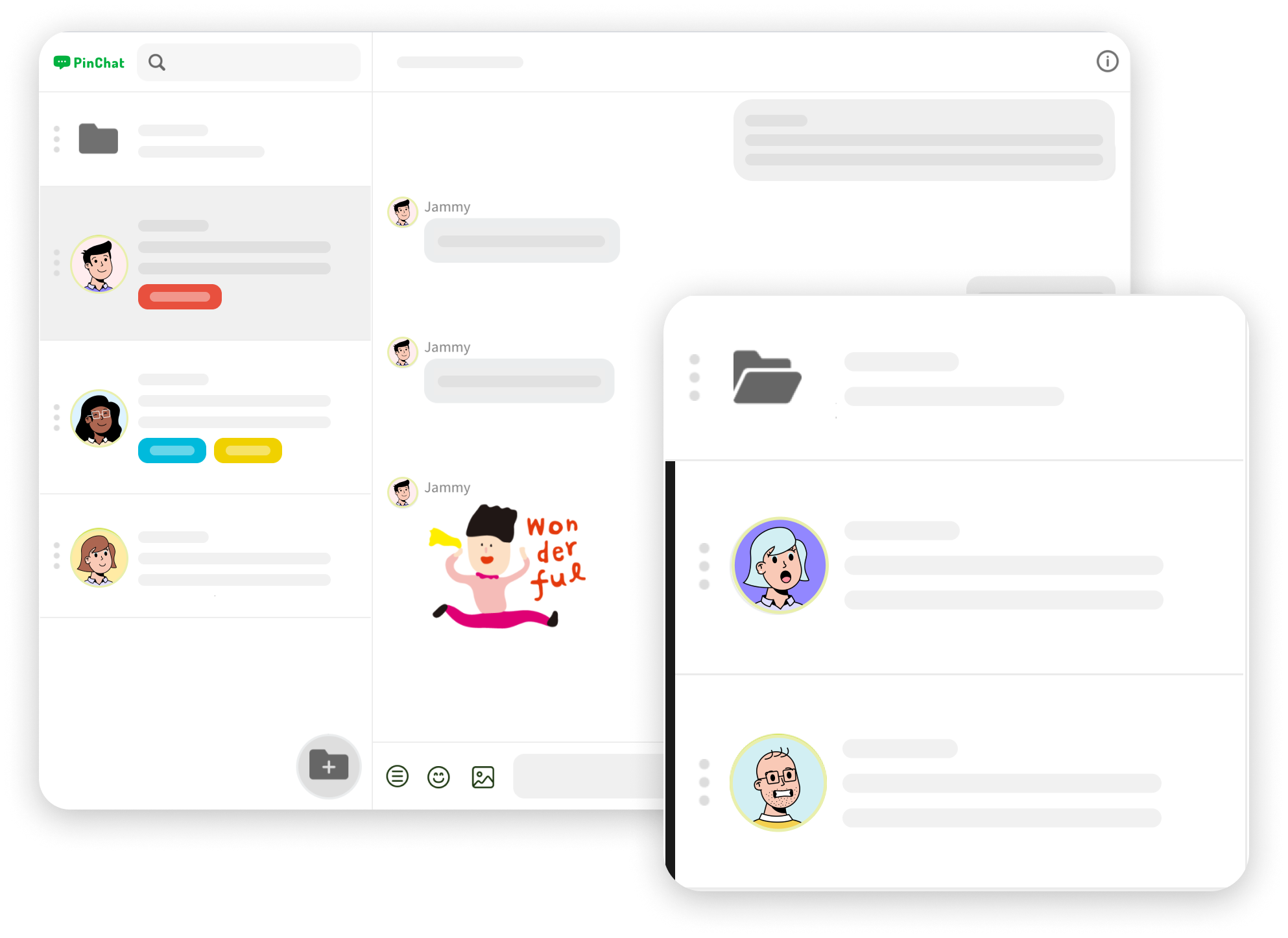 Tidy up your chatroom list with these folders. Add chatrooms into folders with a single drag and drop.